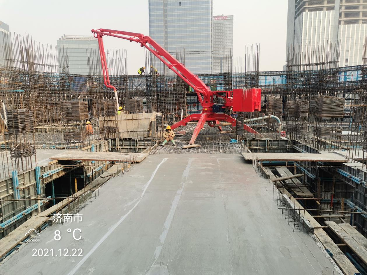 濟(jì)南復(fù)地國(guó)際金融中心260米超高層項(xiàng)目將建53層超高層辦公塔樓一棟,最高處達(dá)260米。該項(xiàng)目總建筑面積128680平方米,地上總建筑面積126267平方米,地上包含辦公、商業(yè)功能區(qū)。地下建筑面積2213平方米。其室外地坪至最高點(diǎn)達(dá)260米。A1地塊總停車位757輛。該項(xiàng)目使用的布料機(jī)為凱博科技生產(chǎn)的HGY15移動(dòng)式布料機(jī)。
